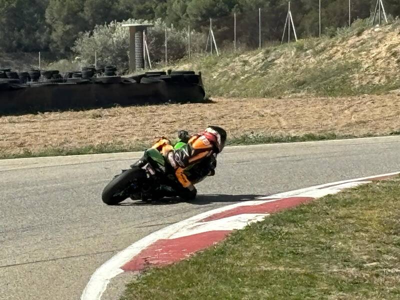 De motor beheersing van beide motoren zit er goed in, en al snel raakten de kuipdelen van de Kawasaki de grond.